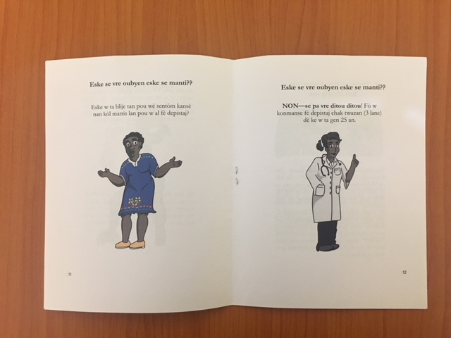 We were able to screen 123 women in total, despite the torrential rain. The women also had breast exams and were shown how to perform a self-breast exam. They were also given our awareness booklets on breast and cervical cancer (pictured below). They were very pleased with the information included and used them as a resource to understand their bodies even more.